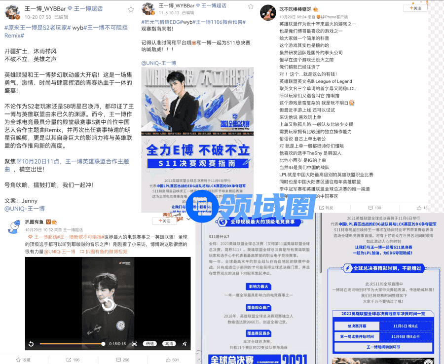 以往每年S赛都的观赛人数和增长都非常可观,而今年却有所不同。以往增长更多是英雄联盟在圈内不断拓展影响力的侧证,而在今年,王一博和英雄联盟的顶配合作,让英雄联盟和电竞在国内收获了更多破圈粉丝。