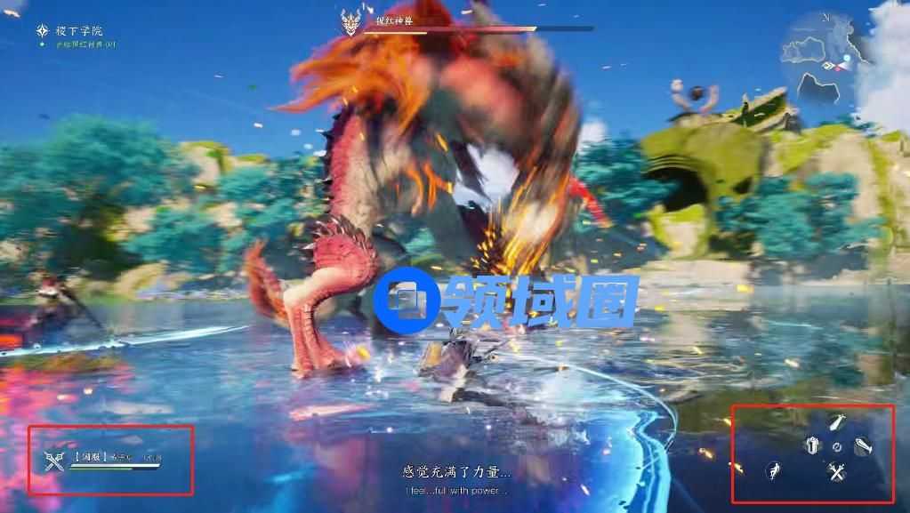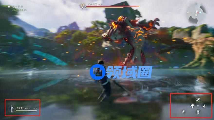 后来主角再次把武器切换回长剑,右下角的技能图标也变回来了。此外,在整个战斗过程,BOSS的血条、耐力条以及右上角的地图等UI都是在动态变化的,可以说明这段战斗画面就是游戏实录。