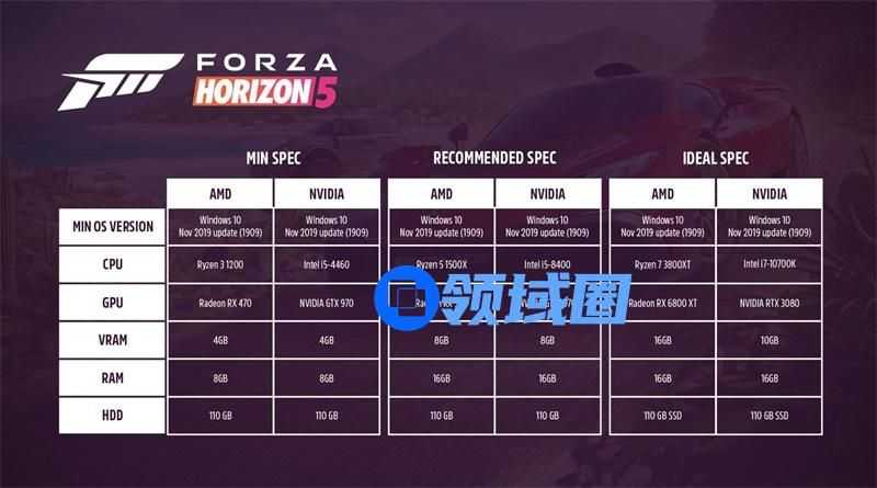 想要体验完整的墨西哥美景,你就需要有合适的配置。根据目前《极限竞速:地平线5》公布的系统配置,你的CPU只要达到Ryzen 7 3800XT/Intel i7-10700K,GPU满足Radeon RX 6800 XT/Nvidia GTX 3080,拥有16GB(AMB)或10GB(NVIDIA)VRAM,RAM达到16GB,并使用110 GB SSD的HDD,即可效果全开。《极限竞速:地平线5》为游戏植入了大量视觉特效系统,让你得以身临其境,体验墨西哥大地的一草一木。