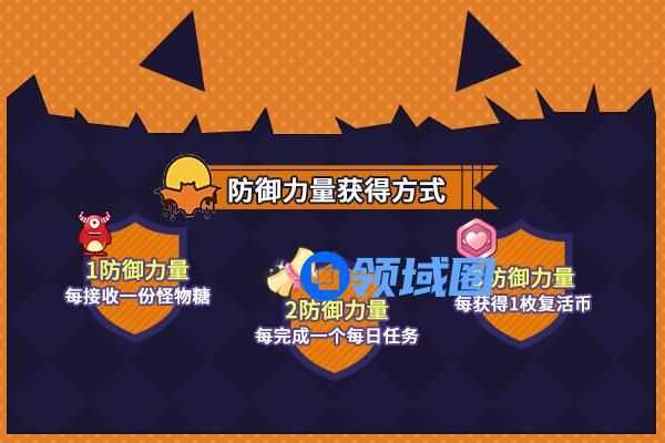 活动期间,点击“参与”将会随机加入一支“护卫队”!您需要和队友们通过以下方式,获得“防御力量”,以抵御每天00:00来自魔王的攻击!偷偷告诉您:魔王最讨厌吃怪物糖!