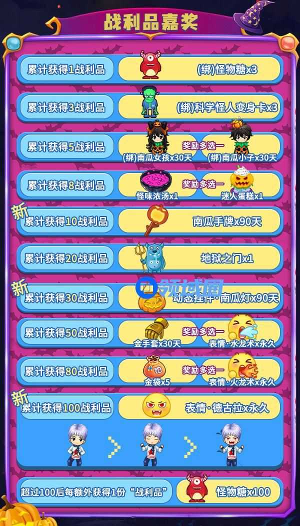 活动期间,每通过接收道具增长50游戏积分即可获得1份讨好道具:“怪物糖”。