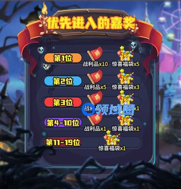 除此之外,每日00:00都会为每个队伍内“防御力量”最强的50位玩家发放“战利品”奖励,无论队伍是否成功抵御魔王的攻击,位于排行榜前50的玩家均能获得额外战利品。根据您累计获得的“战利品”数量,可领取特别奖励: