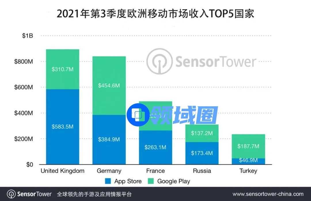 德国是欧洲地区Google Play收入最高的游戏市场,第3季度玩家付费达到3.66亿美元;英国则是欧洲App Store收入最高的游戏市场,贡献了2.69亿美元。
