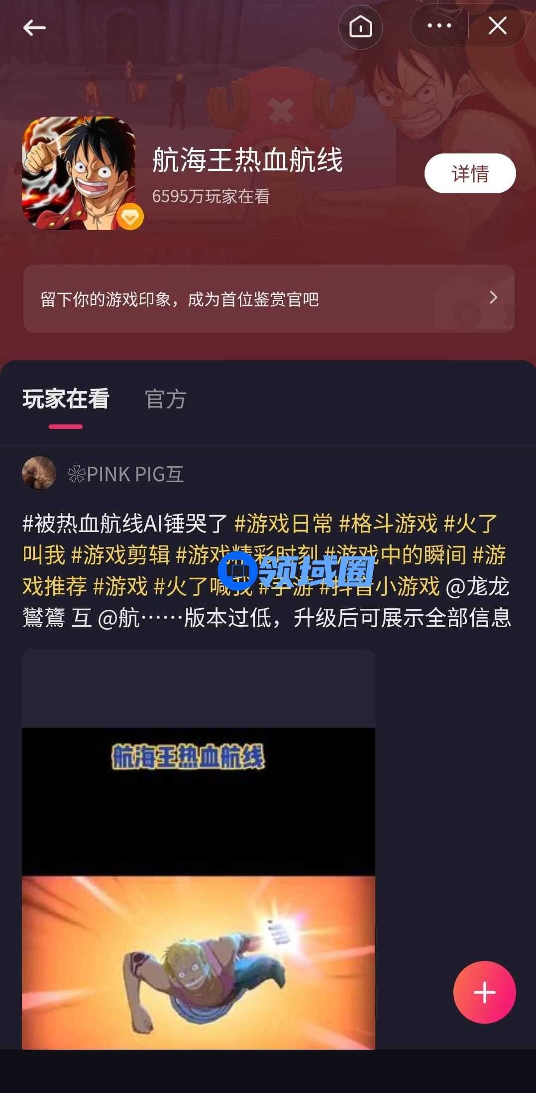 路飞节点时,游戏发行人计划采取了类似的营销打法,并提供了模板素材供创作者学习与使用,降低了视频制作门槛,使更多的创作者参与进来,目前总话题播放量达1.7亿。