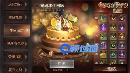 同时,游戏内还开启了“双周年生日趴”福利活动。领主们在城市内收集资源、在世界地图上进行采集、打野的时候,将有机会随机获得活动道具“礼物盒”,每收集一定数量的“礼物盒”,即可在活动页面上进行许愿,兑换丰厚福利。