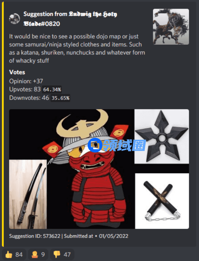 还有一些有关角色皮肤的建议,比如武士盔甲的Nemo看上去很酷,在未来的开发日志中将会说明皮肤系统的进展。