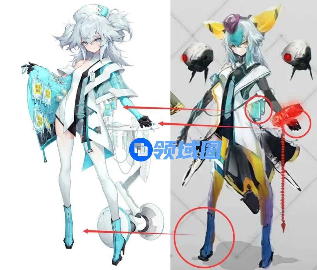 从对比图可以清晰的看到,手部和腿部有明显的“搬运”的痕迹,而角色身上挂着的药袋也几乎是“无缝还原”,并且看起来相当违和。