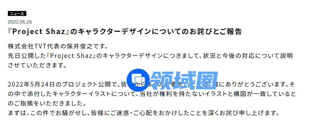 随后,TVT工作室也在官网上发表了致歉声明,承认在设计阶段有参考和拼接其他作品的姿势和身体线条,这种未经授权的图像制作方式是不恰当的。同时表示有问题的插图还在策划阶段,也属于内部使用的材料,在公开信息的时候,他们误以为已经可以到了公开的阶段,就直接把内部使用的材料公之于众,对此负责人保井俊之表示非常抱歉。