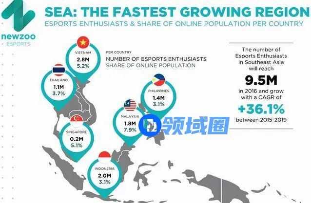 Newzoo发布的一份报告显示,东南亚正在成为全球电竞发展最快的地区。东南亚地区拥有超3500万电竞人口,并且电竞相关收入还在快速增长当中。Newzoo指出,东南亚地区电竞收入2019年至2024年期间的复合增长率预计为20.8%,并在2024年达到7250万美元。这个增长速度是全球平均值的两倍。