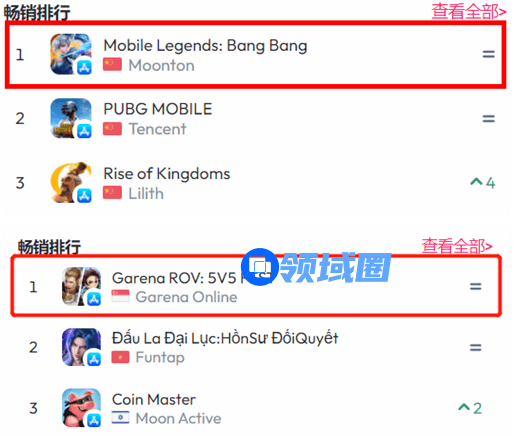 MLBB与Arena of Valor在各自优势地区始终稳居榜首