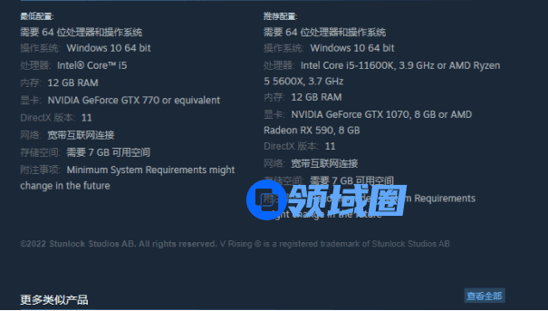 由于《V Rising》上线了steam,所以只需要在steam搜索V Rising购买然后添加入库然后安装游戏即可,安装好就可以游玩啦。