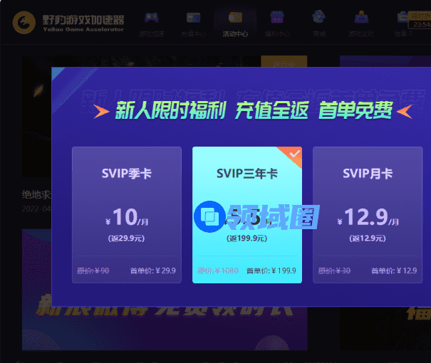 野豹加速器新用户199元获4年加速器时长,每月低至5.5元。新用户活动只有24小时哦。