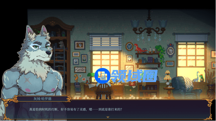 “秋日的午后,被阳光烘焙过的城市味道挤进窗户……”,伴随着敲击键盘的“哒哒声”,一段带着古典风格的文字带我如梦,阳光映出一间物品摆满当的房间内景,一只狼先生正坐在窗边桌后打字机前,游戏开幕是他打下的文字。