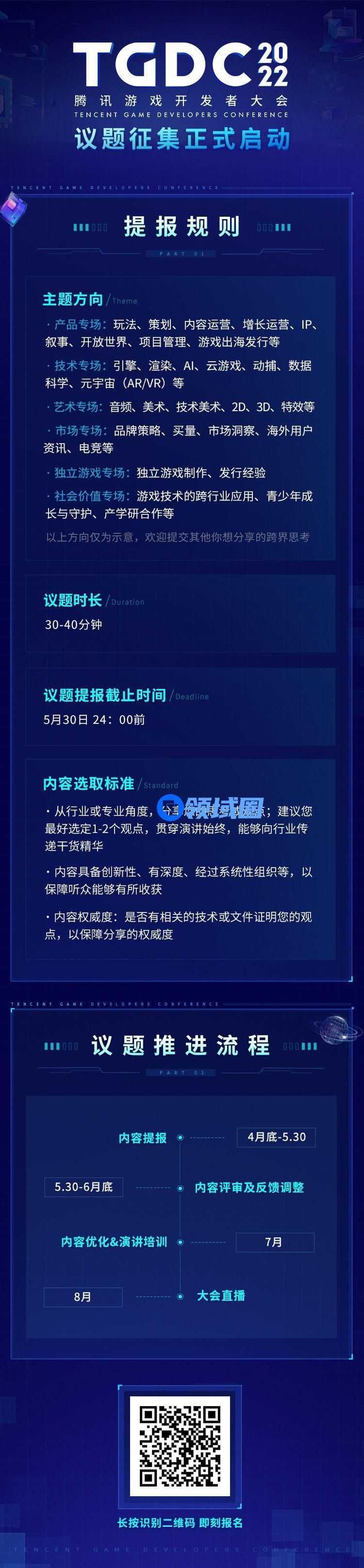作为近6年来首次对外公开招募演讲嘉宾的一届大会,TGDC 2022将以更加多元的视角、更开放的形式,连接游戏行业内外更多领域的开发者。大会主办方腾讯游戏学堂诚邀更多关注游戏行业发展的从业者与专业人士加入,站上TGDC的舞台,分享自身探索游戏行业发展的经验与心得。
