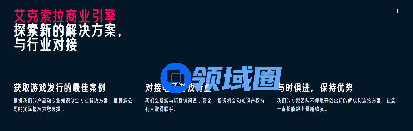 安全、稳定、成熟的第三方支付服务,拓展机遇之门的投资平台,以及从开发、推广层面出发的网红系统和免费架构网站工具等助力,让艾克索拉实现了互助式营销,也为中小游戏团队开拓海外市场提供了最好的机会,在国家对游戏行业的扶持力度下,相信中国游戏开发者一定能在新的领域取得成功。