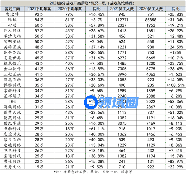 随着上市游戏公司陆续披露2021年年报,去年薪资确实有了明显增长,相关数据也得到验证。游戏茶馆查阅30家上市游戏厂商年报,测算出该厂商平均年薪。