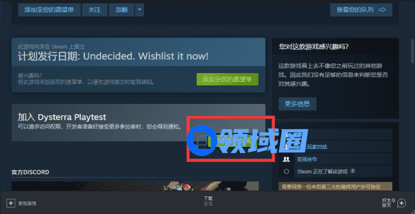 目前《Dysterra》是上线steam的,此次测试也在steam上开放测试。所以想要游玩的小伙伴只需要在steam中加入即可免费试玩。如图所示
