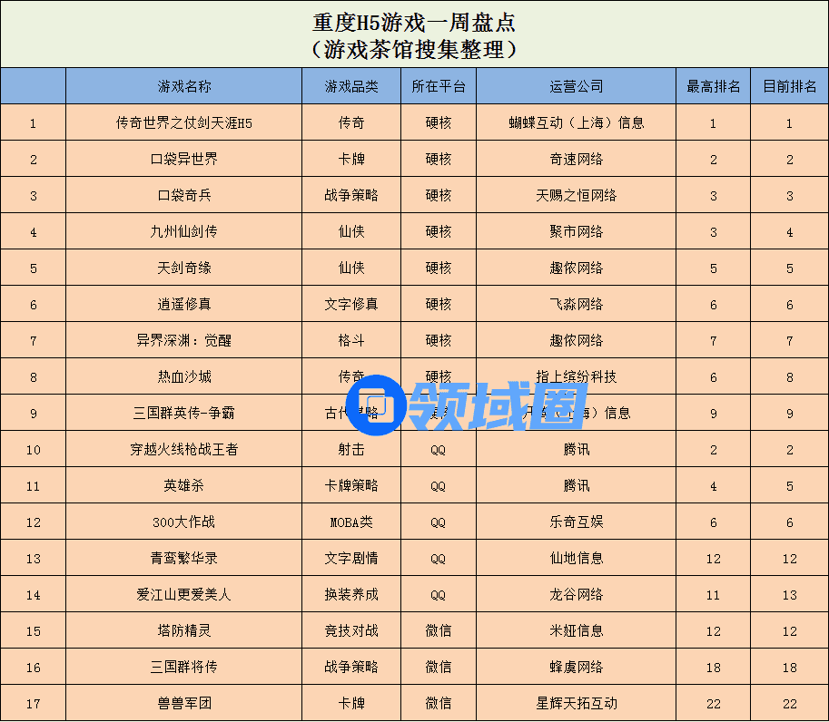 重度H5游戏:《口袋奇兵》跻身TOP3,《青鸾繁华录》登上榜单前列