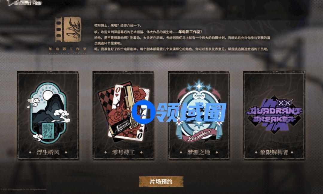 正所谓做戏就做全套的,鹰角甚至给“灯下定影”拍了个电影预告性质的片场前瞻PV。泥岩、傀影、龙舌兰、苇草四位干员似乎正在一部特工电影的拍摄现场。