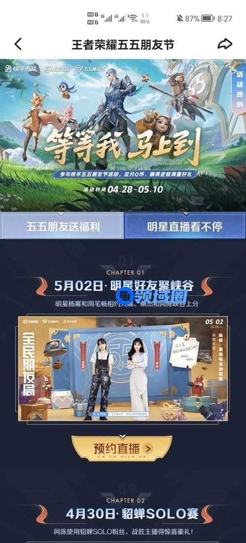 同时,依托快手站内丰富的《王者荣耀》游戏达人生态,此次“五五朋友节”中,达人们也将为粉丝们带来惊喜直播。4月30日,有“国服第一貂蝉”之称的“阿陈”将直播上演“貂蝉Solo赛”,使用貂蝉与粉丝进行单挑,展现超强个人操作,而成功战胜“阿陈”的粉丝玩家可赢得惊喜好礼。