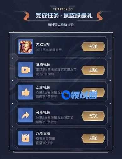 4月28日至5月10日期间,用户在快手带话题#王者荣耀五五朋友节#发布视频,可以获得快手定制游戏内头像框,并参与瓜分千万流量和十万Q币。用户如使用快影模版拍摄视频发布,有机会赢取更多流量和Q币好礼。此外,活动首页每日零点刷新任务,用户完成任务就有机会获得貂蝉“五五朋友节”新皮肤等豪礼。