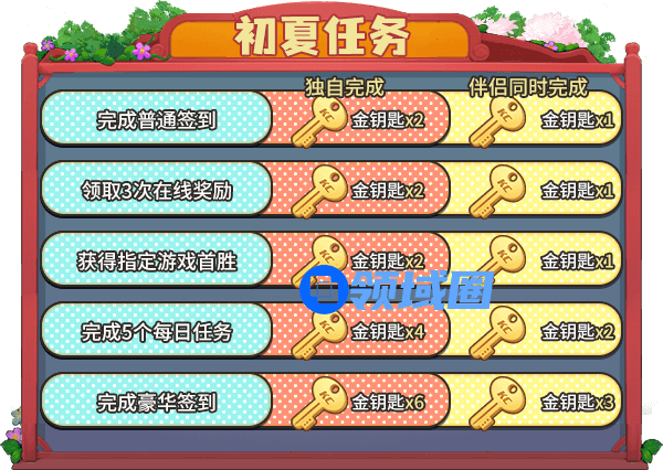 1、“初夏任务”每日刷新,请小伙伴们及时完成当日任务,以领取金钥匙奖励;