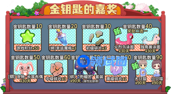 2、“金钥匙的嘉奖”中每种奖励最多领取一次;