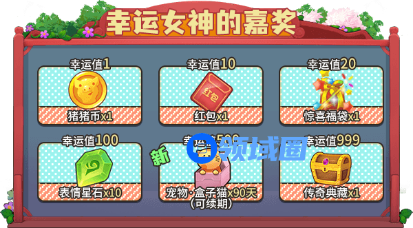 每花费100金币可获得1点幸运值和1次抽奖机会!积攒“幸运值”,兑换“幸运女神的嘉奖”!