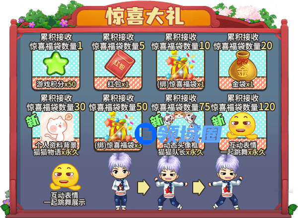 活动期间,根据您接收“惊喜福袋”的数量,发放额外奖励!