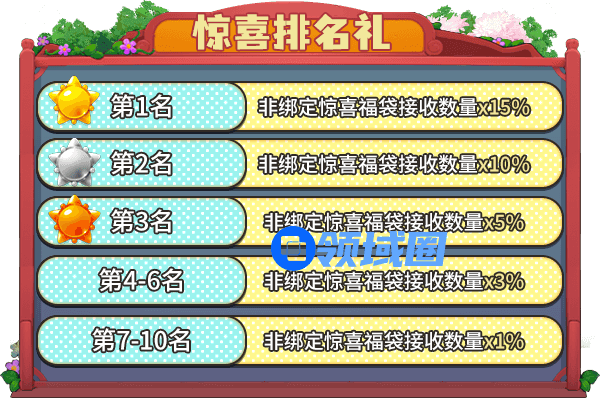 活动规则:“惊喜排名礼”将按名次赠送对应百分比的非绑定惊喜福袋。