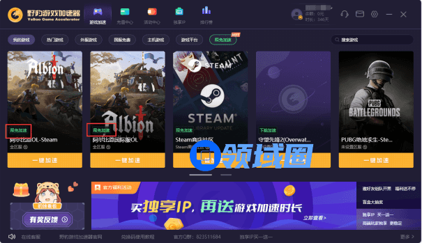 野豹游戏加速器也推出出了阿尔比恩限免加速的活动,小伙伴们抓紧去体验吧。
