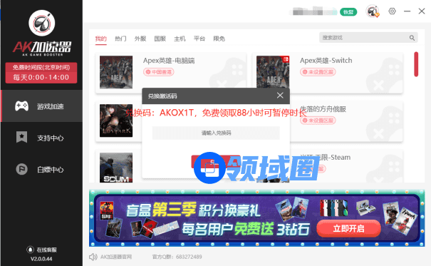 再额外送大家一个福利,能免费兑换88小时可暂停时长(兑换码:AKOX1T),复制AKOX1T 即可兑换。