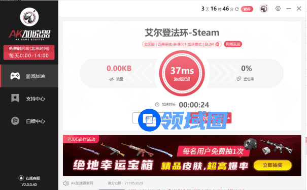 很多玩家在游玩线上模式的时候经常会遇到卡顿,连接错误等网络问题,这里建议大家使用AK加速器。AK加速器免费而且加速稳定。并且每天有14个小时的免费加速时间,而且可以邀请小伙伴组队白嫖免费时长,并且它的时长时可以暂停的,随用随停,非常的方便。性价比也是非常高的,并且加速效果也非常的稳定,对大量的线路进行了优化。