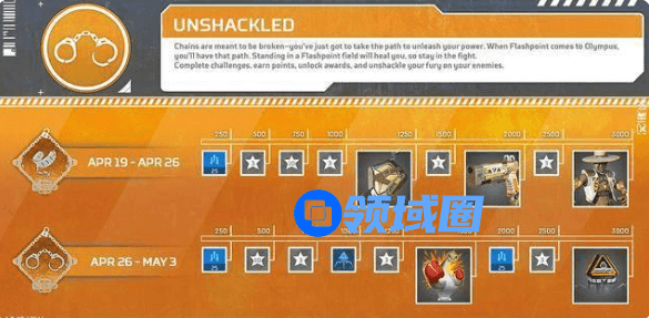 开发商Respawn说:"在Unshackled活动中释放你的拿手英雄的全部力量!在闪点模式Flashpoint中,以前所未有的方式在奥林匹斯山上游戏。你不会找到盾牌或治疗物品,相反,在闪光点区域才能恢复和加盾牌,你最好准备好为之战斗!"。