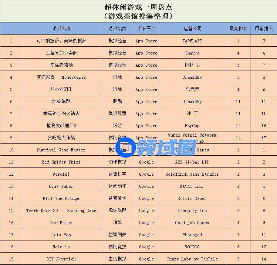 超休闲游戏方面,在App Store免费游戏榜单中,Ohayoo发行的《王蓝莓的小卖部》登上榜单TOP3;Google Play免费游戏榜单中,鱿鱼游戏题材的经营类游戏Survival Game Master》空降榜首。