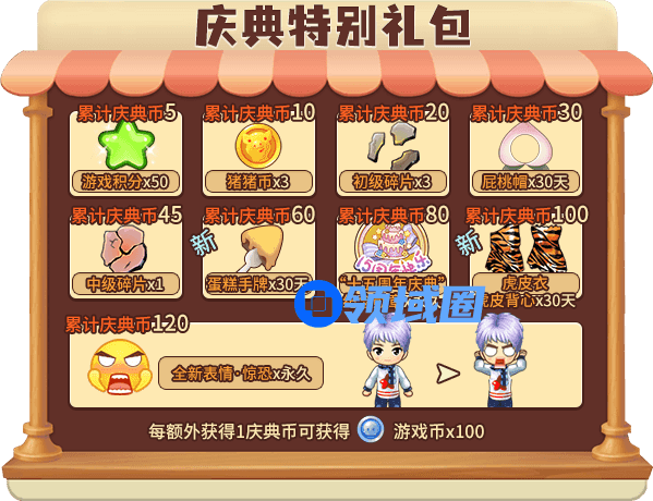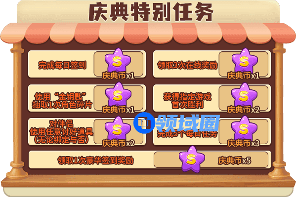 活动期间,完成活动任务,即可收集庆典币!根据您累计获得的“庆典币”,领走特别礼包!