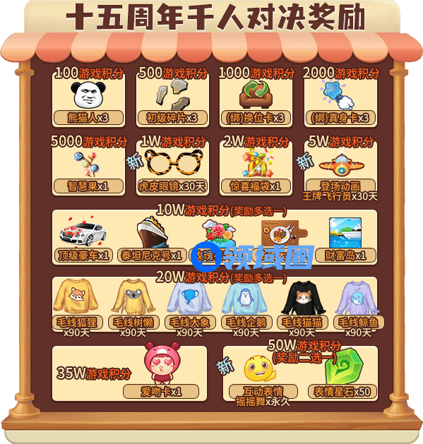 除了排名奖励外,根据您在活动期间通过接收道具累计增长的总游戏积分,可领取以下奖励: