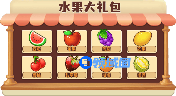 每次摇奖都会随机获得3种奖励,如果同时出现三种一样的水果,就能额外获得“水果大礼包”一份!