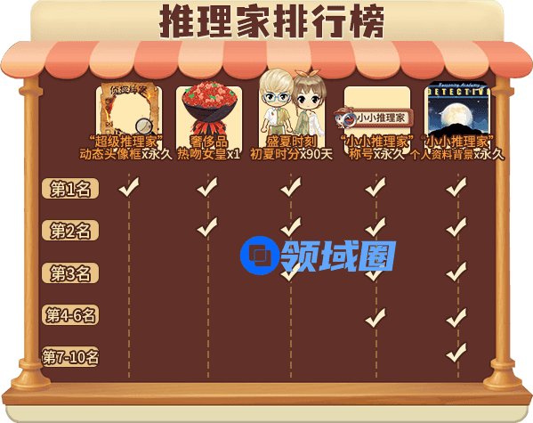 在活动结束后,为推理家排行榜上前10名玩家发放特别礼物!