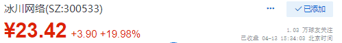 4月11日,国家新闻出版署版号下发2022年首批版号。4月12日,冰川网络涨停开盘。今日10点21分再次涨停,收盘价23.42元。