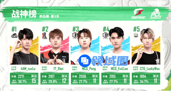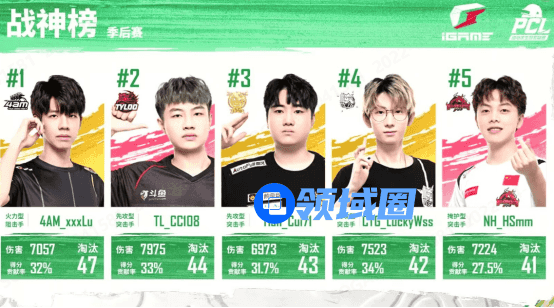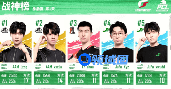 选手榜单:4AM战队xxxLu荣膺季后赛战神