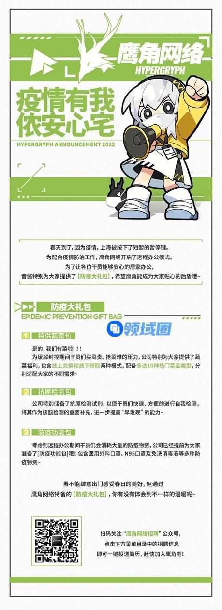据笔者了解,早在3月初,鹰角就已经启动了居家办公模式,并且为企业员工协调配送了居家防疫物资,包括新鲜蔬菜、抗原检测包、以及N95口罩、消毒液等等。