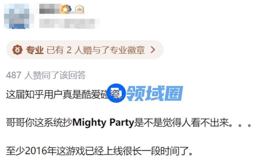 群众的眼睛是雪亮的。很快,这一说法就遭到了其他知乎用户的驳斥,关键性的反驳证据浮出水面。有用户结合自身丰富的游戏经验表示,方案中提供的系统分明就是抄袭 其它游戏,后者是一款 2016 年上线的游戏,从时间维度上对“从未采用过”这一说法予以了精准反击。