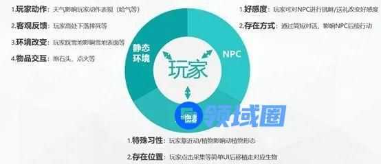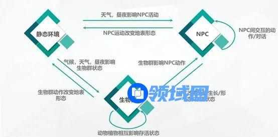 (2)组件元素:包括了后续可被规则利用的实体类,我大致将其分为NPC、怪物、生物群及可交互物体四种。四种实体类都可以尽可能从以下方面还原真实世界的性质:NPC的外貌、性格、行为、身份、对话等;怪物与生物群的种类形态、分布区域、生存习性、行动ai等;可交互物体的表现效果、属性、交互触发条件和交互结果等。通过铺量地订制列举属性形成对应的实体,形成游戏内一个个独特的元素;元素按规律地排列组合放置如场景中最终形成了游戏世界。比如《老滚5》里的鸡是无敌的,而且你敢杀鸡全村人就会杀你……额好像举的例子不太对,比如《巫师3》里鸡会躲开杰洛特四散走动,想跑快还会举起翅膀跑走;杀鸡会留下尸体捡起生肉,鸡蛋,甚至会掉羽毛。(那为啥用技能火烧不是烧鸡呢?为啥不是熟肉?额就这样吧!大家懂我意思就行)。