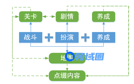 RPG游戏的核心玩法包括战斗+扮演+养成三大内容,由此我认为可发散到①战斗→关卡;②扮演→剧情;③养成→技能树;④战斗扮演触发所在地:地图;⑤线性关卡以外的额外点缀内容五大部分阐述。