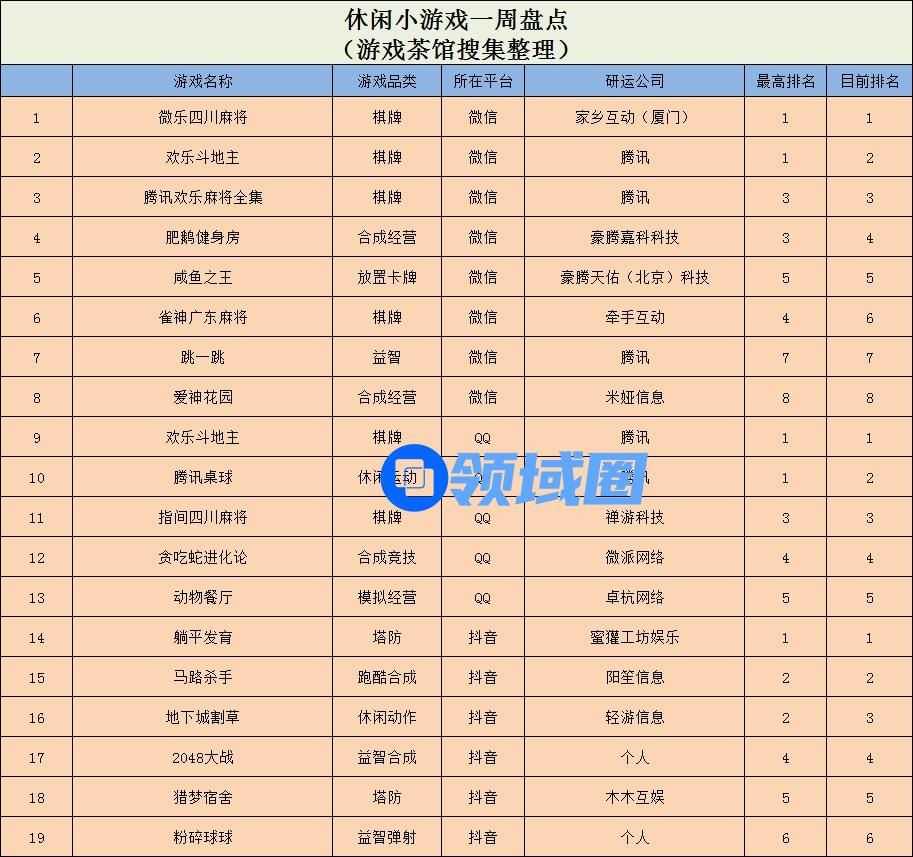 休闲新游周报每周统计微信小游戏、QQ小游戏、抖音小游戏、硬核小游戏以及App Store和Google Play上的新游爆款,并按照分类制作表格,将游戏排名情况等信息公布,希望给到行业同侪帮助。