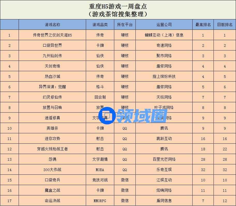 重度H5游戏:《怨偶》首次登榜,《魔盒之战》进入榜单TOP3