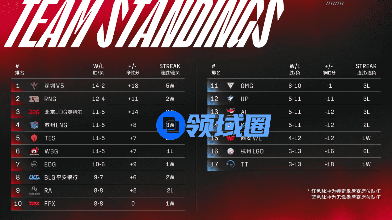 而RNG、北京JDG、TES等积分榜排名靠前的队伍,也相继迎来不同位置的补强,使得今年季后赛席位的争夺变得空前激烈——最终有4支队伍同为11胜,第二名RNG与第七名EDG之间也仅仅只相差两个胜场。