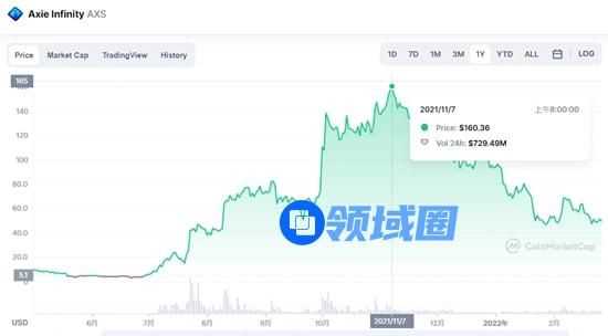 具体到链游方面,以《Axie Infinity》的代币AXS为例,去年11月时最高触及160美元,而现在只有50美元左右。短短数月,AXS价格跌去了68.75%。今年1月时,《Axie Infinity》相关NFT宠物24小时内交易量达1200万美元,而如今一周成交量还不到900万美元。