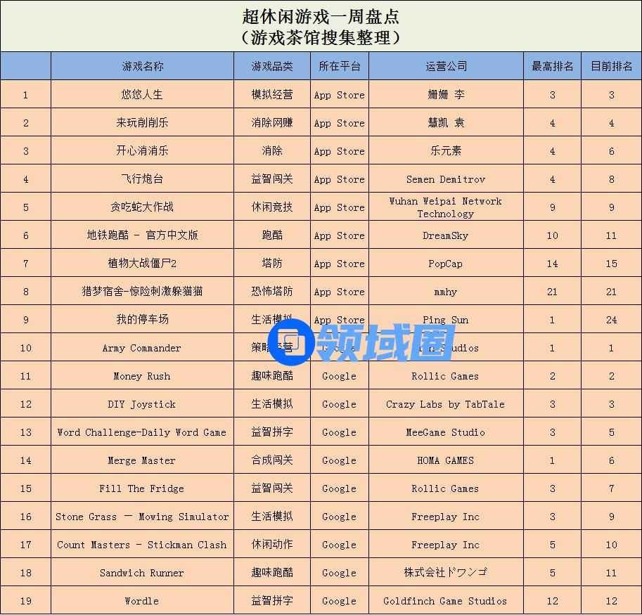 超休闲游戏:《悠悠人生》排名上升,Lion Studios新游空降榜首